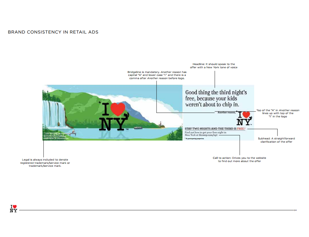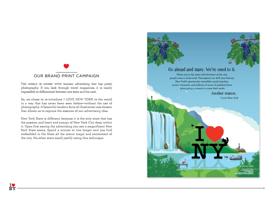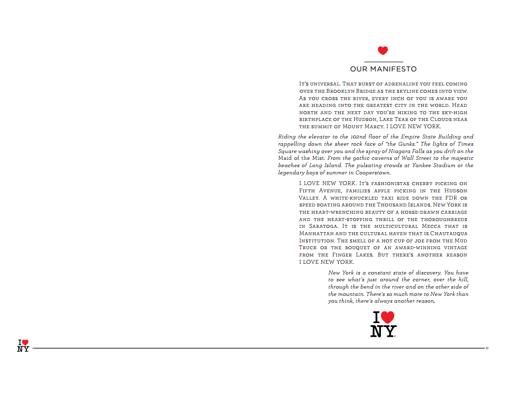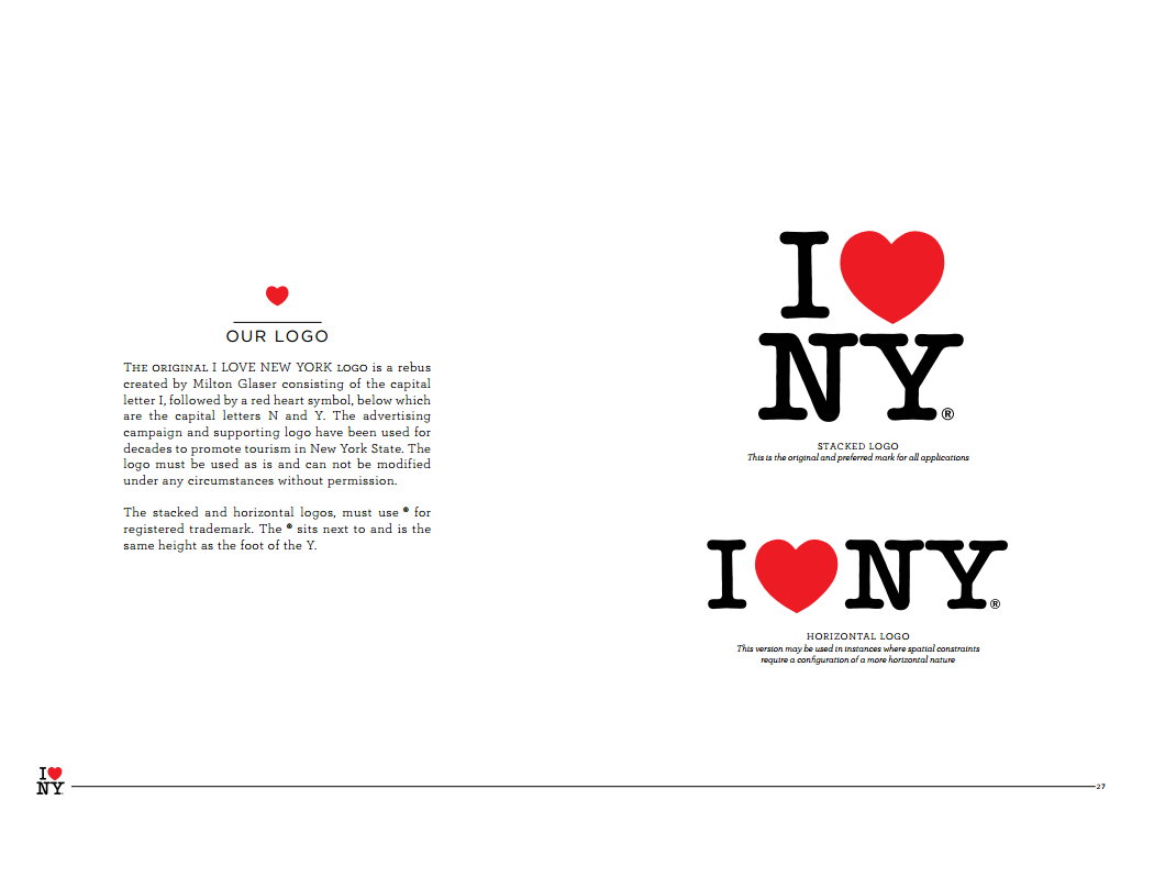 Хрестоматийный пример. Является, пожалуй, самым известным и цитируемым кейсом городского брендинга. Знаменитый логотип Мильтона Глейзера, созданный в 1976 (77?) году, был частью городской рекламной кампании, направленной на привлечение туристов. В 2008 году кампания была запущена повторно. Вот полные инструкции по применению логотипа.