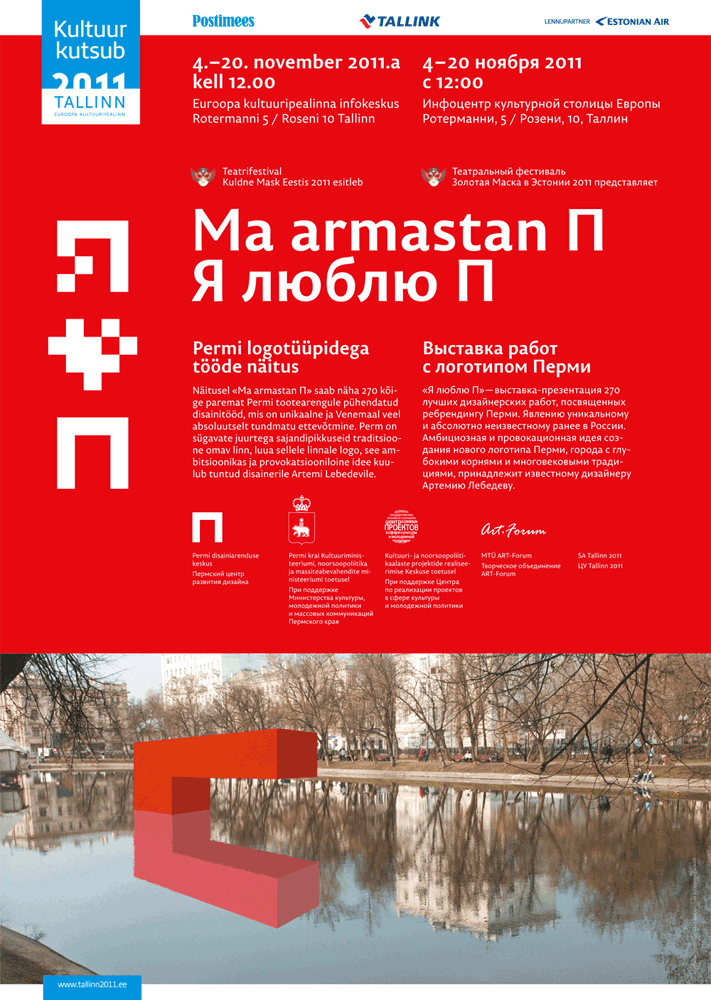 Скандальная, я бы даже сказал, легендарная П авторства Артемия Лебедева, которая заставила общественность (а не только дизайнерскую тусовку) бурлить и кипеть, обсуждая этот дизайн. Кстати, Пермь стала первым русским городом со своим логотипом.