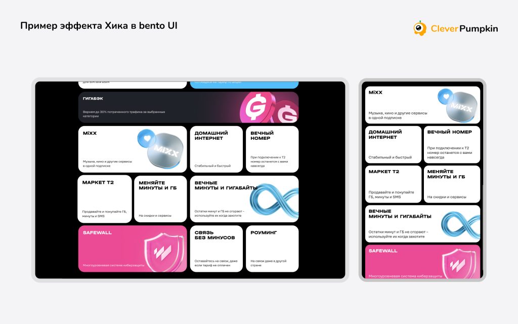 Если переборщить с количеством bento-модулей, пользователь может потеряться в потоке однотипных блоков. И не забудьте про эффект Хика — это феномен, при котором чем больше вариантов выбора у пользователя, тем дольше он принимает решение. Это особенно критично в сценариях, где важна скорость и интуитивность.