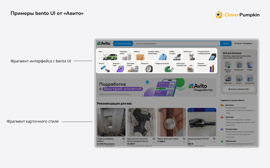 В статье веб-дизайнер студии комплексной разработки цифровых решений CleverPumpkin Александр Попов вместе с лид-дизайнерами команд «Авито», «Альфа-Банк» и «Детский мир» разбирают, чем bento-стиль отличается от других модульных подходов к созданию дизайна; ситуации, где модульность помогает и в каких мешает. Внутри — примеры продуктовых интерфейсов, выводы и практические рекомендации по работе с bento.
