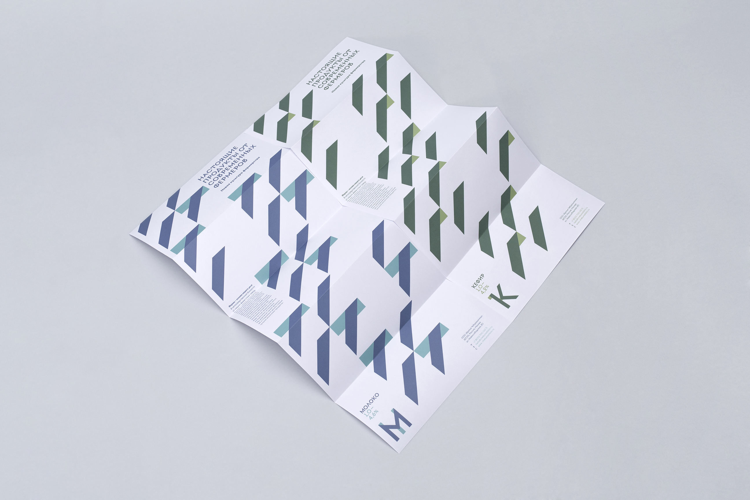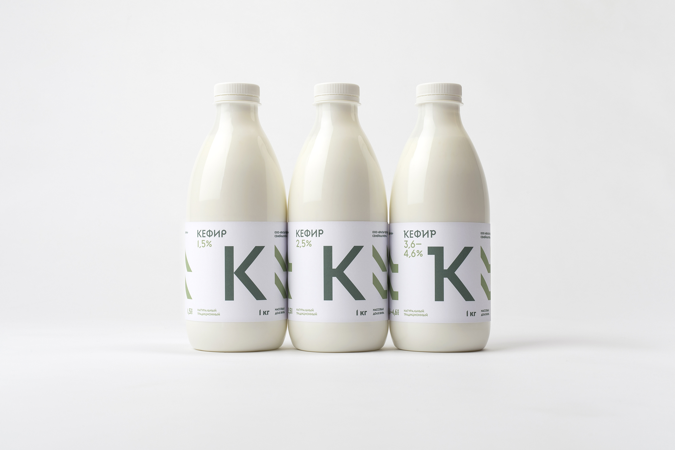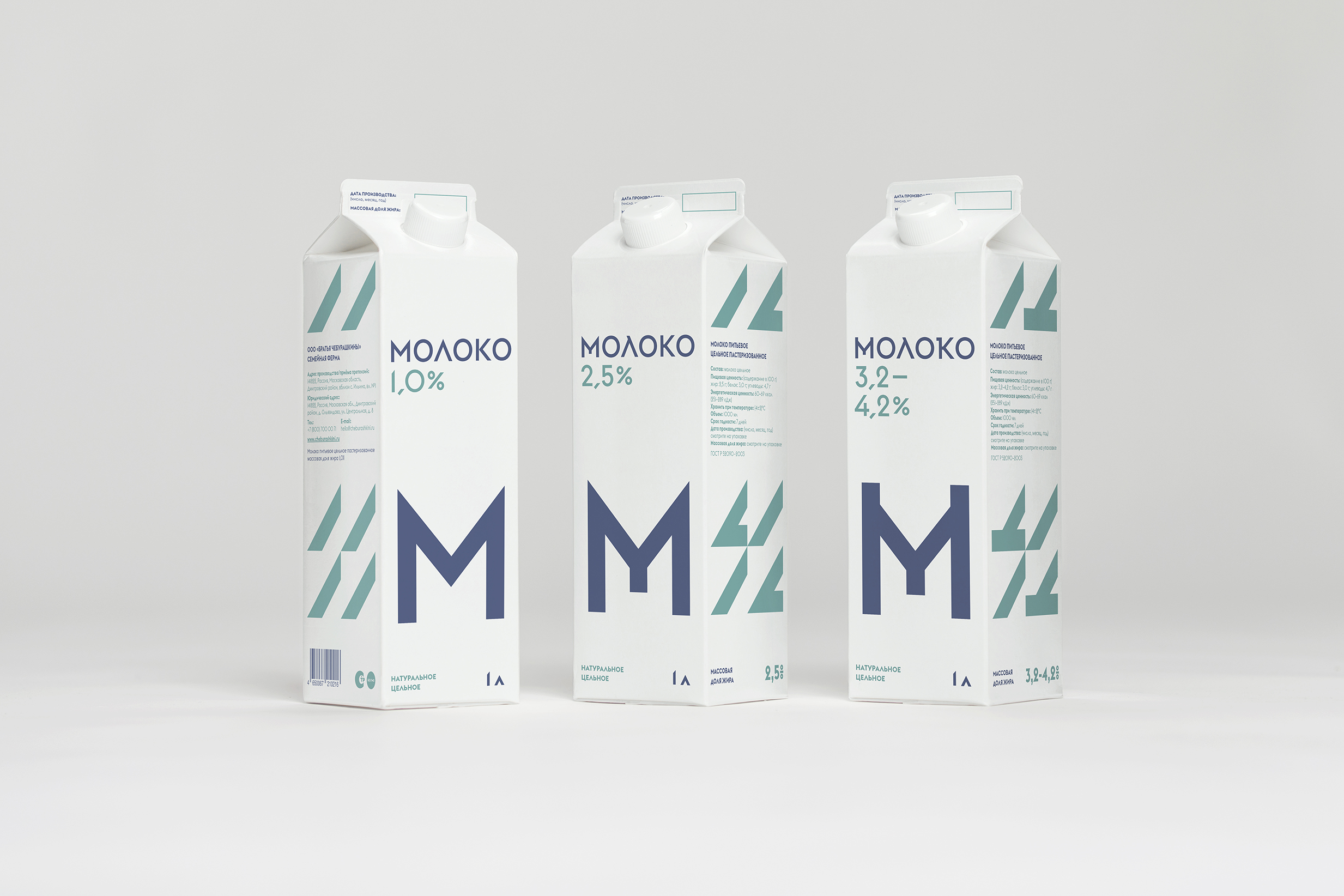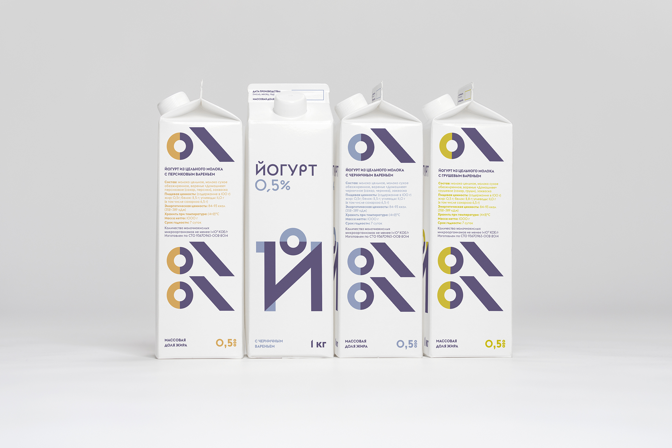 Идея упаковки построена на типографике: инициальные, первые буквы продукции являются главной частью дизайна. Мы разработали свой акцидентный шрифт с альтернативными формами знаков. Вдохновившись древнеславянскими символами, мы сконструировали собственную абстрактную графику на базе букв. Она является дополнительным элементом идентичности, отражая сельскохозяйственную тематику: поле, росток, стог сена, трава, ягоды и так далее. Как произрастает растение от семени к цветку, также инициальные буквы продуктов с графикой эволюционируют в соответствии с процентом жирности. Каждому продукту был присвоен основной цвет для типографики и дополнительный для графики.