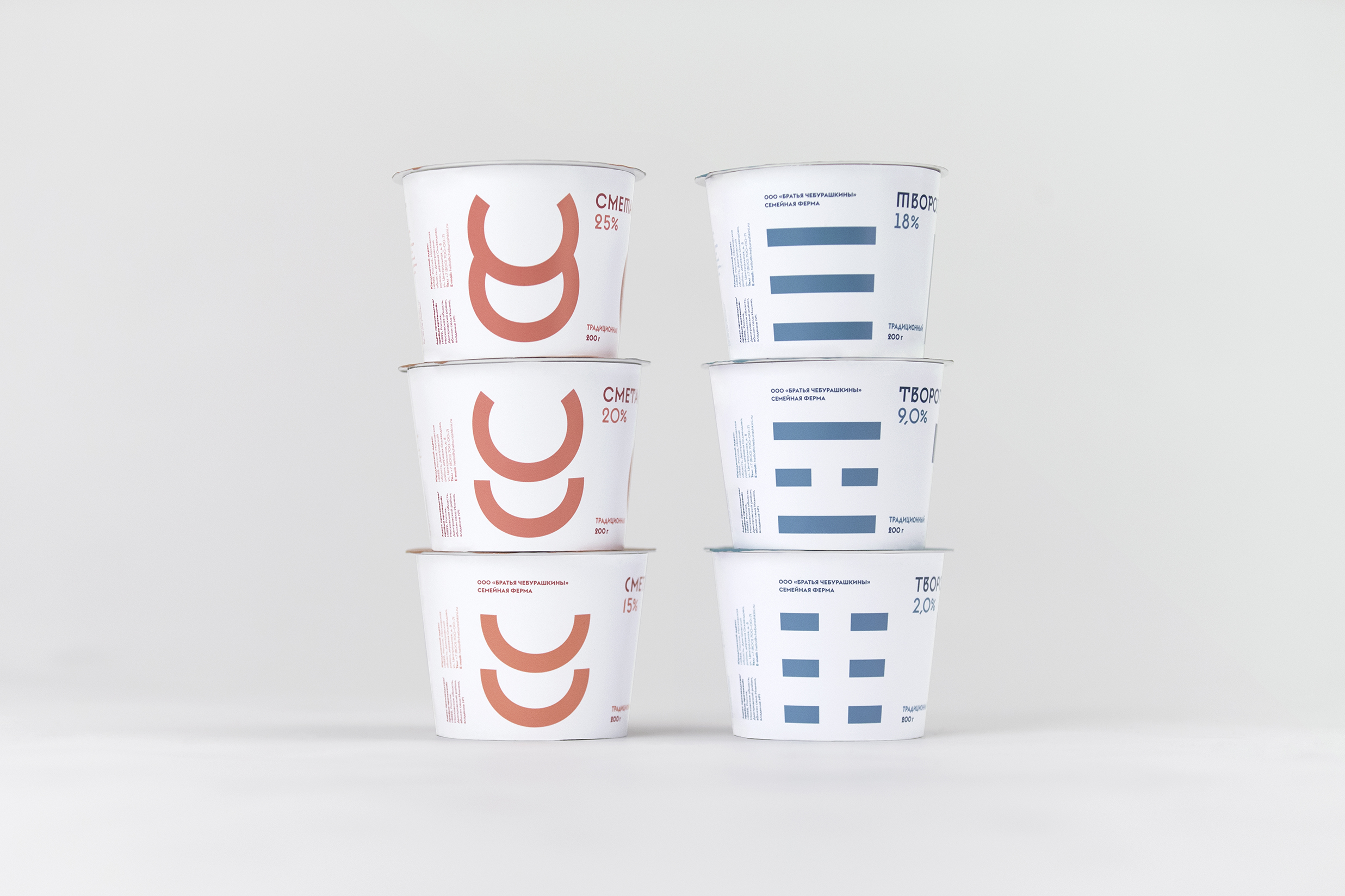 Идентичность молочных брендов на российском рынке чаще всего строится вокруг традиционных визуальных кодов: коровы, струйка молока, трава, крынки молока, бидоны, коты и так далее. Мы сознательно не пошли по пути привычных визуальных решений, так как Братья Чебурашкины — это новая культура фермерства с большим личным вовлечением самой семьи. Это не просто бизнес или маленькая ферма — это новый формат, требующий свежего подхода в дизайне.