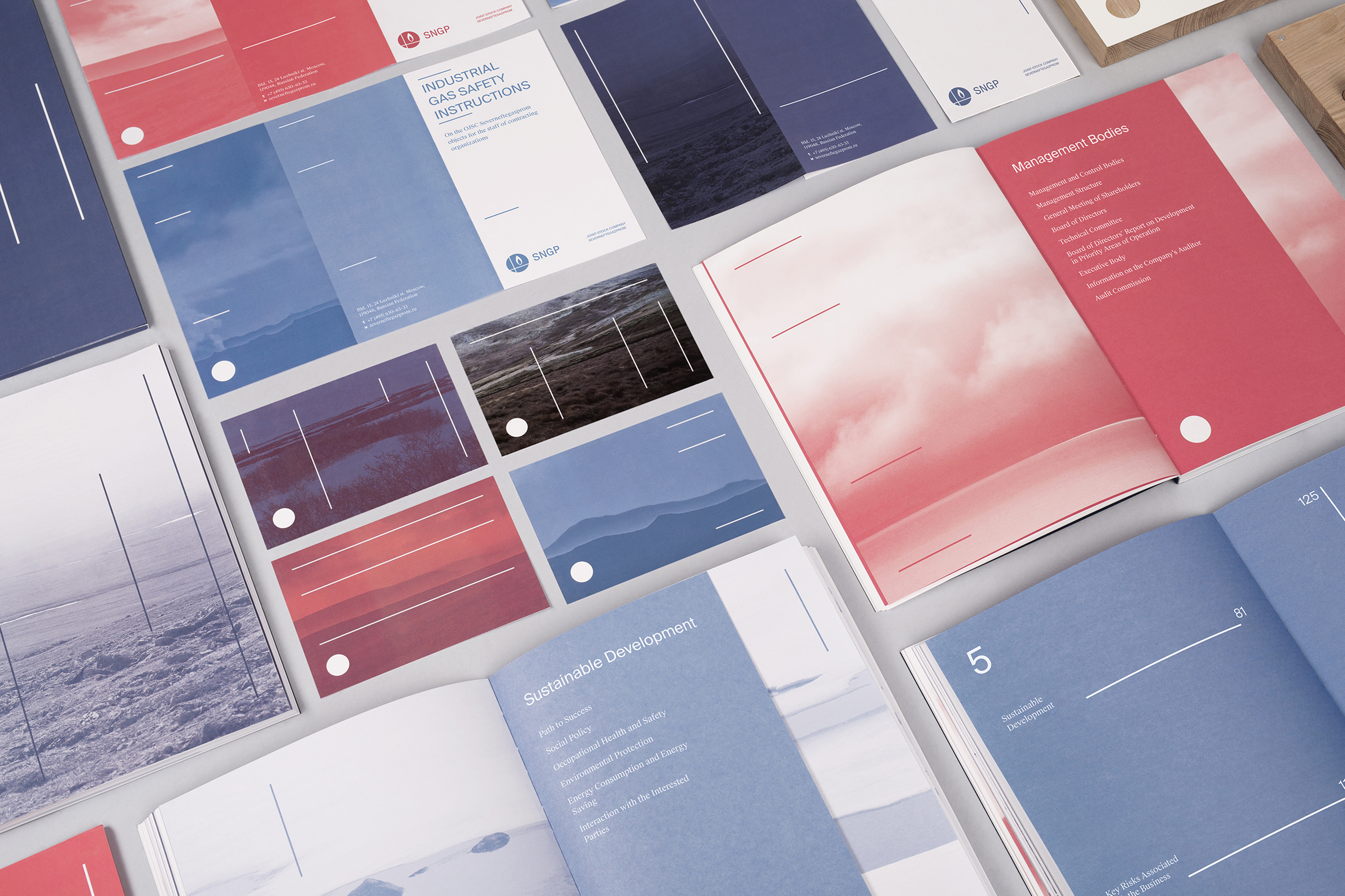 В основу визуальной системы лёг принцип построения различных графических композиций на базе точки, вертикалей и горизонталей, которые дают абстрактную ассоциацию с деятельностью компании. Месторождение находится в уникальной и необыкновенной по красоте местности. Поэтому в стиле используются фотографии природы в сочетании с фирменной графикой и тонированием в фирменные цвета.