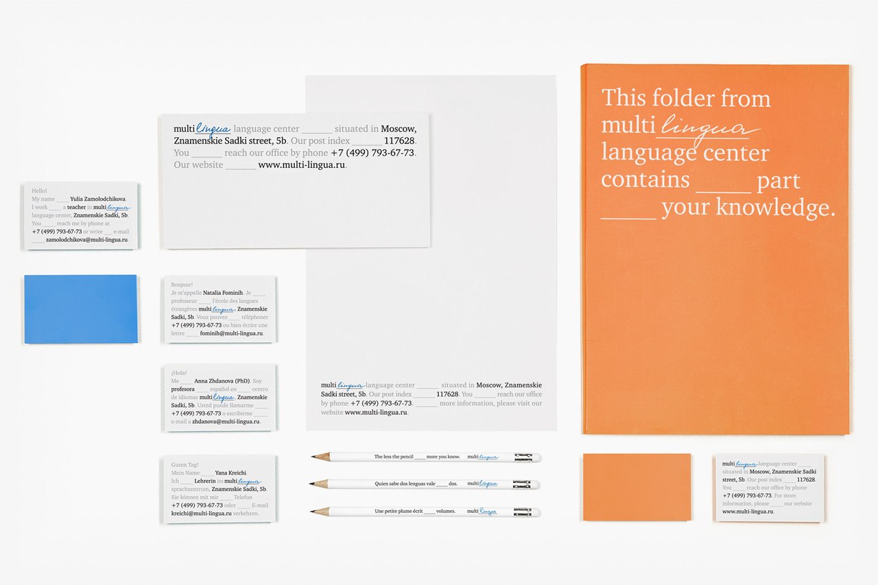 Студия дизайна Трансформер в 2010 году создала для школы иностранных языков Мультилингва фирменный стиль, который и сейчас выглядит свежо и актуально. Полный рассказ о проекте можно посмотреть на сайте студии.