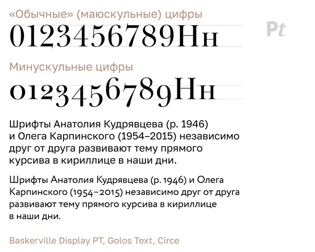 Минускульные цифры. Цифры ростом со строчные буквы и с выносными элементами. Нужны, когда текст для чтения набран строчными буквами, а в нём встречается много дат или других чисел.