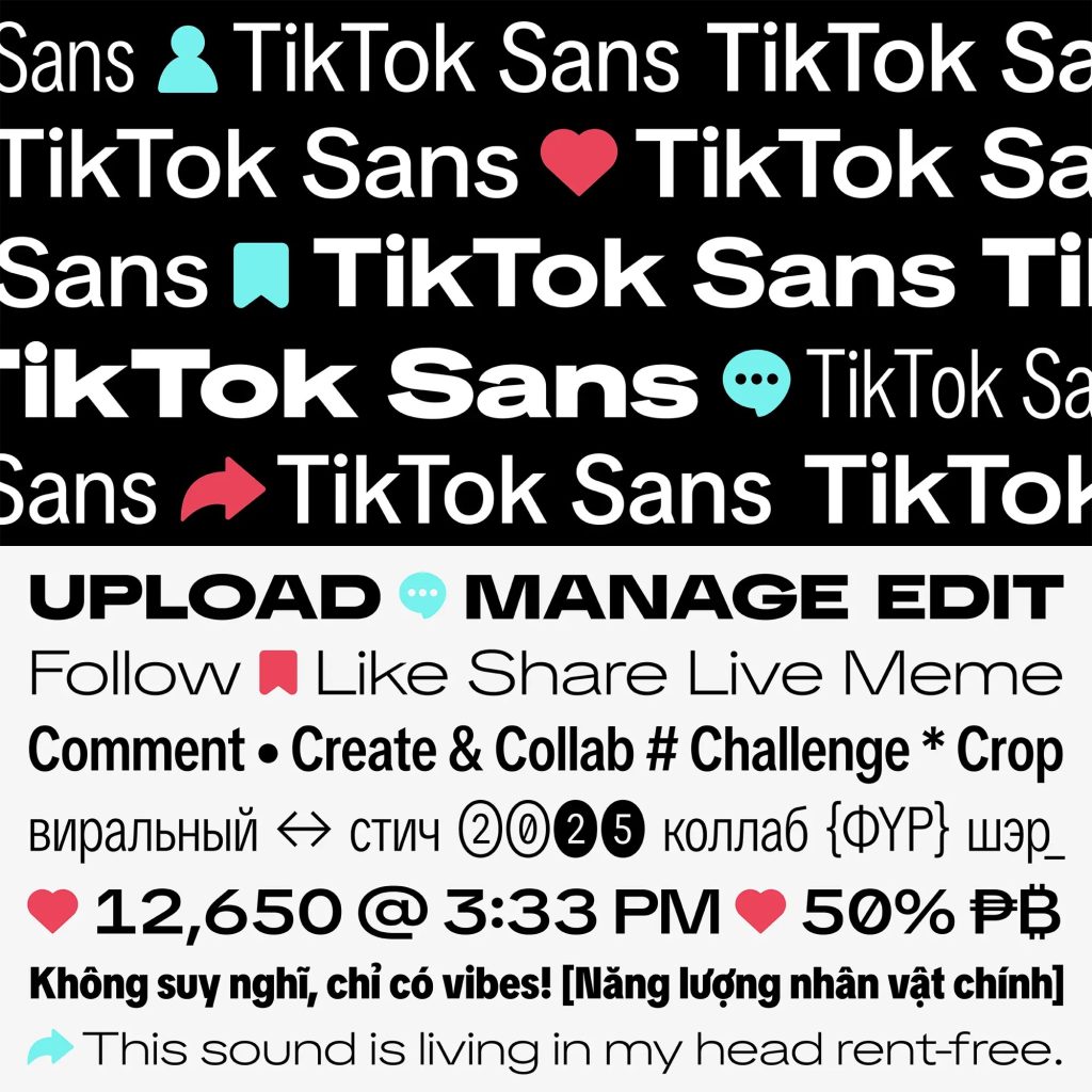 TikTok Sans. Бесплатный фирменный шрифт известной соцсети имеет 14 стилей. Это вариативный гротеск с небольшой геометричностью и позитивным характером.
