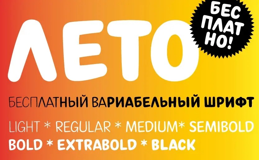 Лето. Вариативный декоративный гротеск с семью начертаниями и жизнерадостным характером.