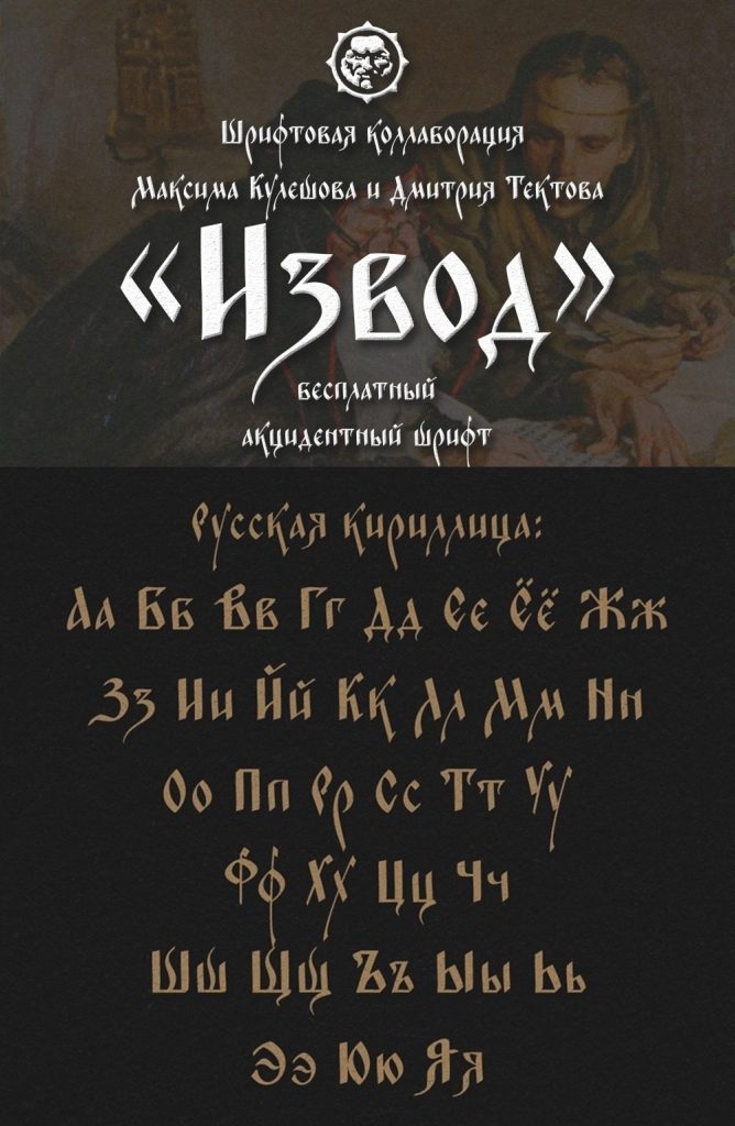 Извод. Акцидентный псевдостаринный шрифт в традиционном русском стиле.