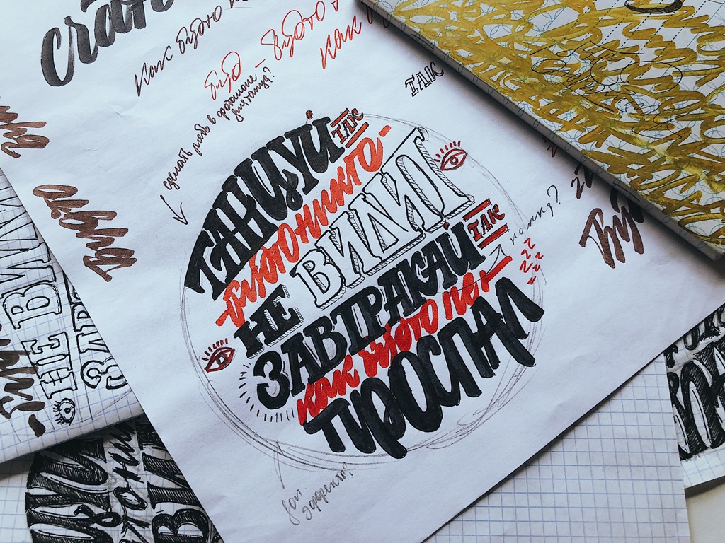 На двухдневных мастер-классах или коротких воркшопах невозможно с нуля научить ремеслу, но можно продвинуть человека вперёд в отдельных моментах. Можно вдохновить или помочь разобраться с чем-то конкретным. На мой мастер-класс в Москве пришёл Саша Гончаров, с ним мы сейчас вместе работаем над несколькими проектами. Он моушн-дизайнер и занимается леттерингом. Мы общались после занятия, и он сказал, что я помог ему взглянуть на некоторые вещи под другим углом. Например, раньше он жалел инструмент, медленно писал и выводил каждую букву, вследствие чего надписи почти не отличались друг от друга. Я поделился опытом работы, посоветовал попробовать ускорить темп письма, меньше беспокоиться о сохранности маркеров, и его подход изменился.