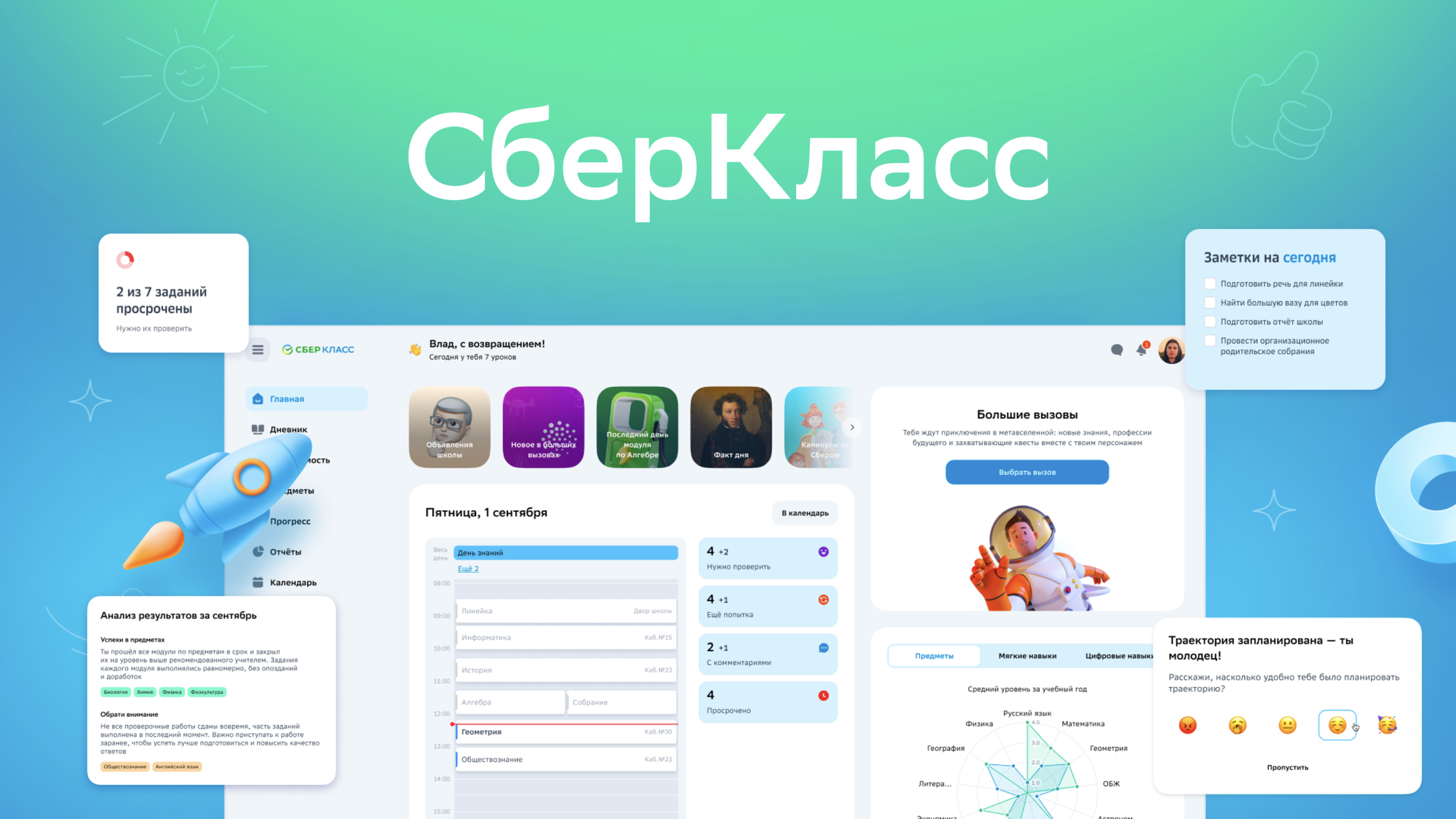 - ИИ-сервис для учителей «Ассистент преподавателя», ИИ-сервис от СберОбразования, который анализирует аудиозаписи уроков, создаёт конспекты, стенограммы и отчёты по метрикам преподавания;