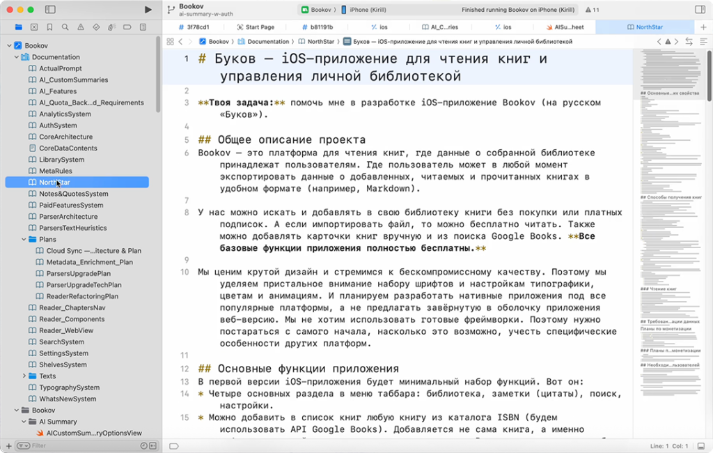 Обсудите документ с нейронкой. Отправьте его в чат, обсудите архитектуру или попросите выбрать технологический стек. Задавайте вопросы, чтобы узнать недостатки вашего описания и улучшить его.