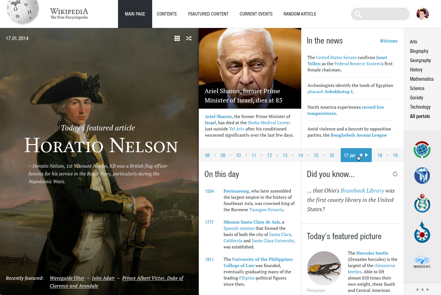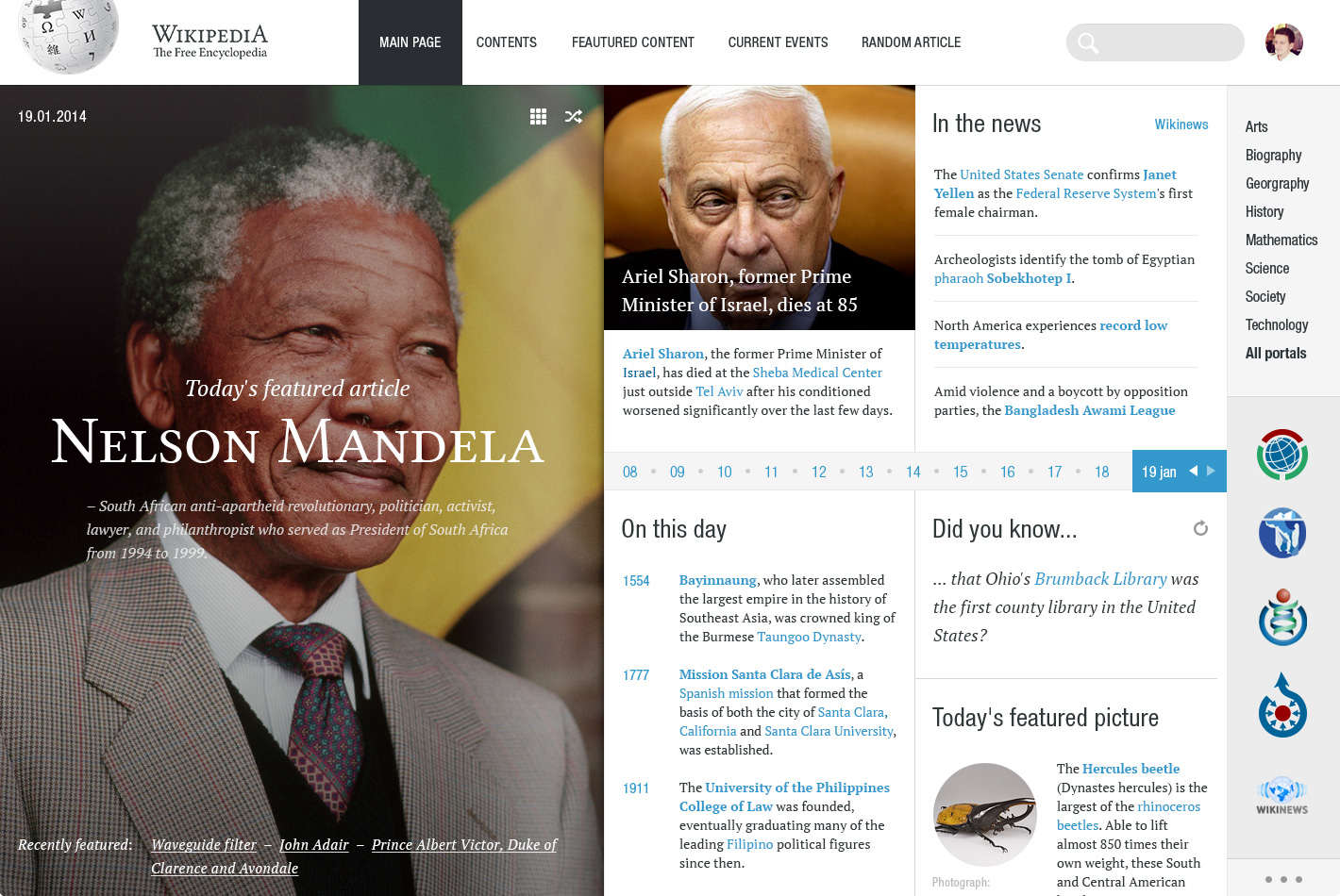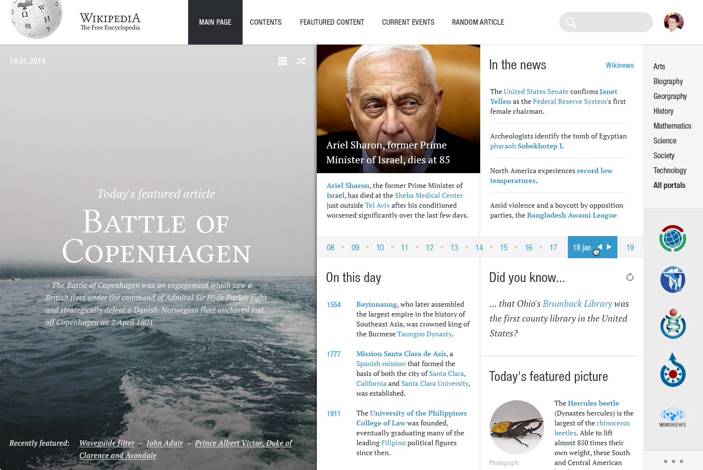 Совсем скоро энциклопедия обновит свой дизайн по-настоящему. Они уже тестируют прототип под названием Winter. Тем интереснее сравнить то, что предлагают сторонние дизайнеры с результатом работы команды Викимедиа.